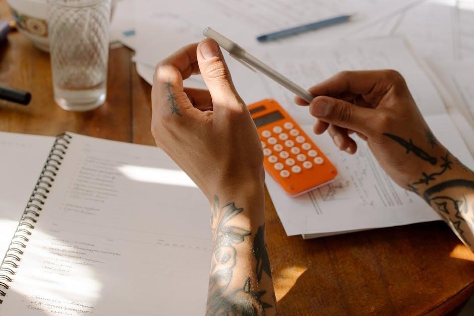 In Vedic Maths, multiplication techniques are designed to simplify complex calculations, often faster than conventional methods. One popular approach is the “Vertically and Crosswise” method, which works for multiplying numbers close to a base (e.g., 10 or 100). For example, multiplying 99 by 97 becomes simpler by subtracting from 100: (100 ⎼ 99) × (100 ‒ 97) + the crosswise difference. Another method is multiplying numbers by series of nines (e.g., 999), reducing the process to a series of subtractions. The book’s PDF often includes diagrams and step-by-step guides to visualize these processes. While these techniques are practical, some critics argue they lack consistency and may not always be the most efficient. Despite this, enthusiasts praise the methods for their ability to instill confidence and speed in problem-solving. The multiplication chapter in the book is a favorite among learners seeking shortcuts for competitive exams or daily calculations.